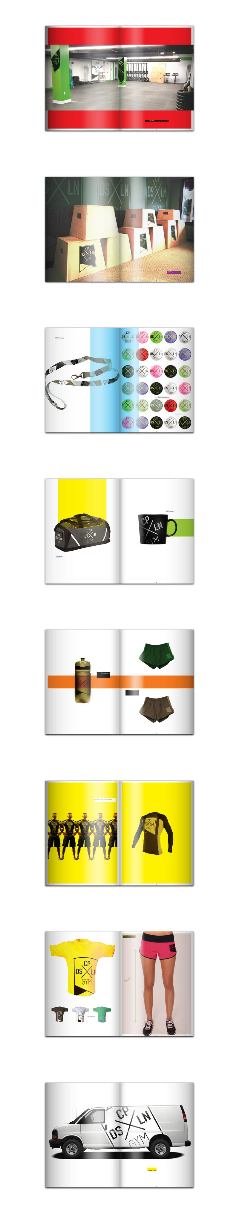 I created visualisations of the sign in different contexts – as badges (pins), wall stickers, lanyard, sports bag and mug, as well as a DSCPLN bottle, shorts, rashguard, tees, and, of course, the DSCPLN Gym car.