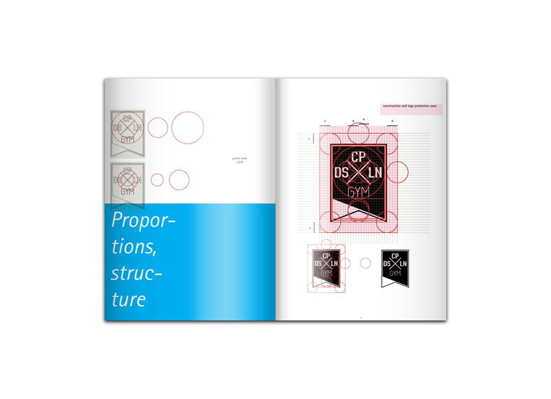 Its design was based on golden ratio proportions. The rhythm created by repeating circular proportions in sizes of elements used, makes the sign closed and whole, with its gravity center exactly in the center of the DSCPLN letters.